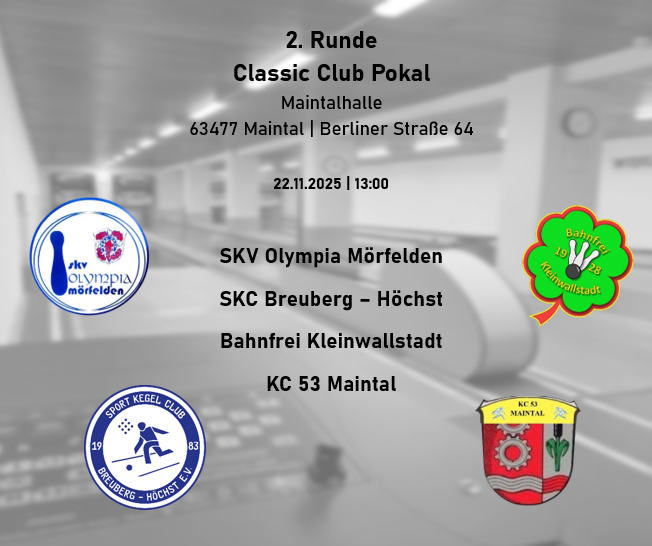 Nun kam Simon Neumann zum Einsatz, er konnte 511 Kegel erzielen und damit 9 Punkte (1/4/2/2) verbuchen. Mörfelden zog weiter davon (37,5 Pkt.) neuer Zweiter Maintal (31 Pkt.) gefolgt von Breuberg-Höchst (26 Pkt.) und Kleinwallstadt (25,5 Pkt.).